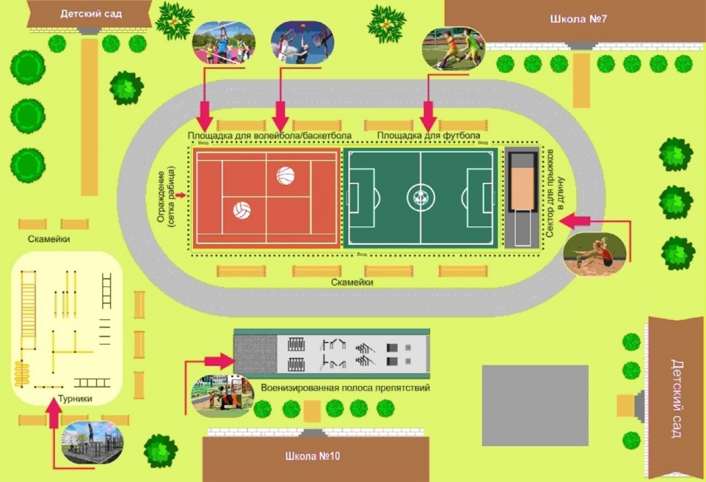 В 2021 году необходимо установить ограждение футбольного поля и баскетбольно-волейбольной площадки, оборудовать полосу препятствий, сектор для прыжков в длину, дополнить зону турников новыми элементами.