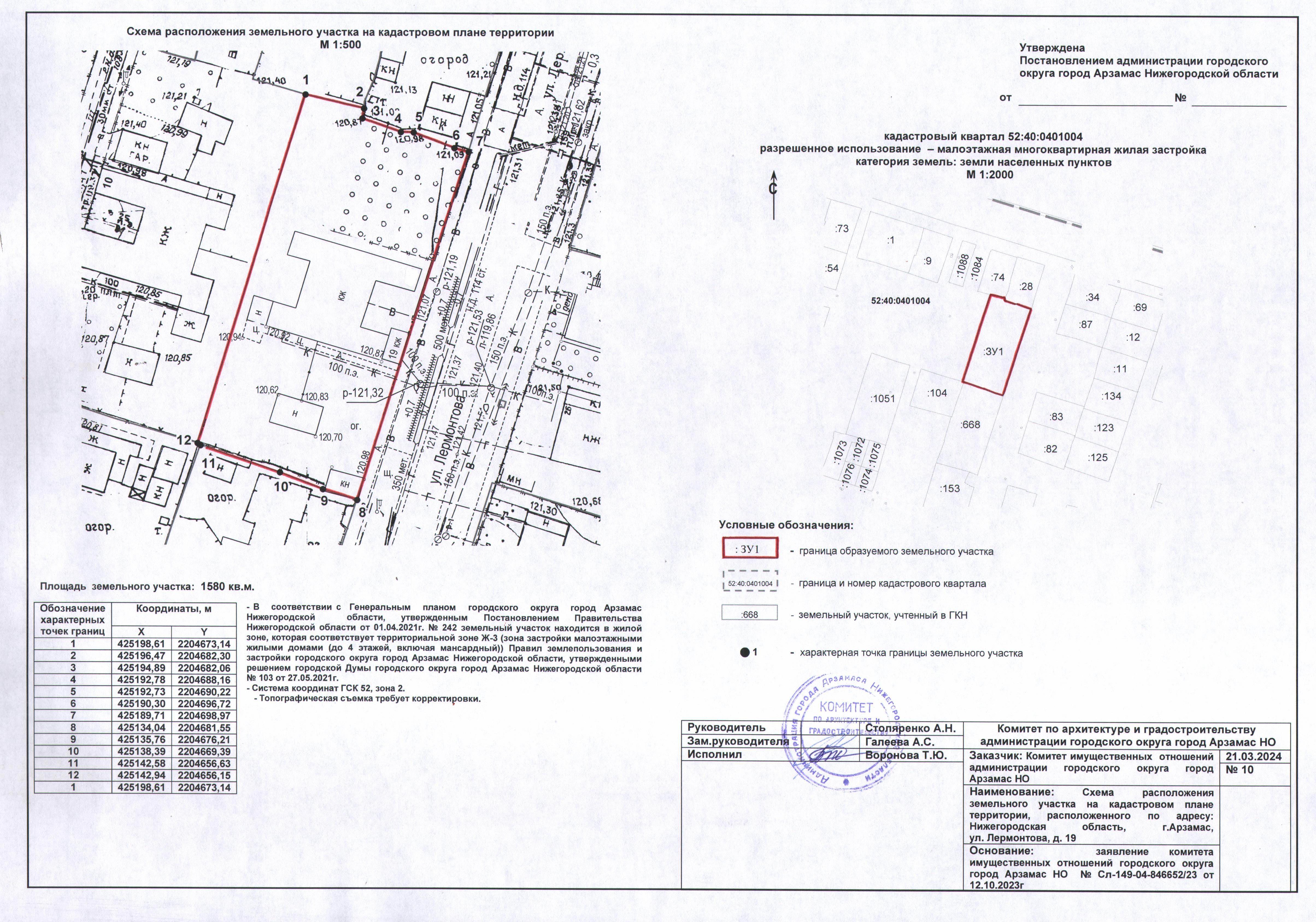 Графические материалы (схема расположения земельного участка на кадастром плане территории по адресу: Нижегородская область, г. Арзамас, ул. Лермонтова, д.19) 9 апреля 2024 Раздел: Прочие документы Тип: Прочие Уровень: Муниципальный 9 апреля 2024 Скачать документ jpg, 0 Б