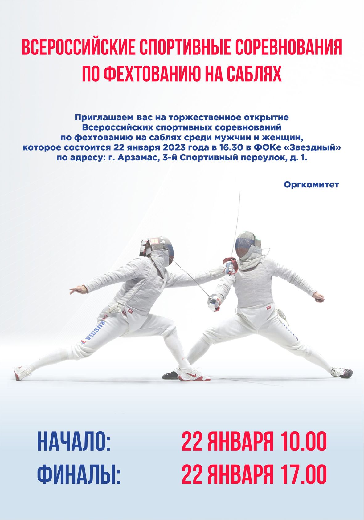 22 января в Арзамасе состоятся Всероссийские спортивные соревнования по фехтованию на саблях среди мужчин и женщин