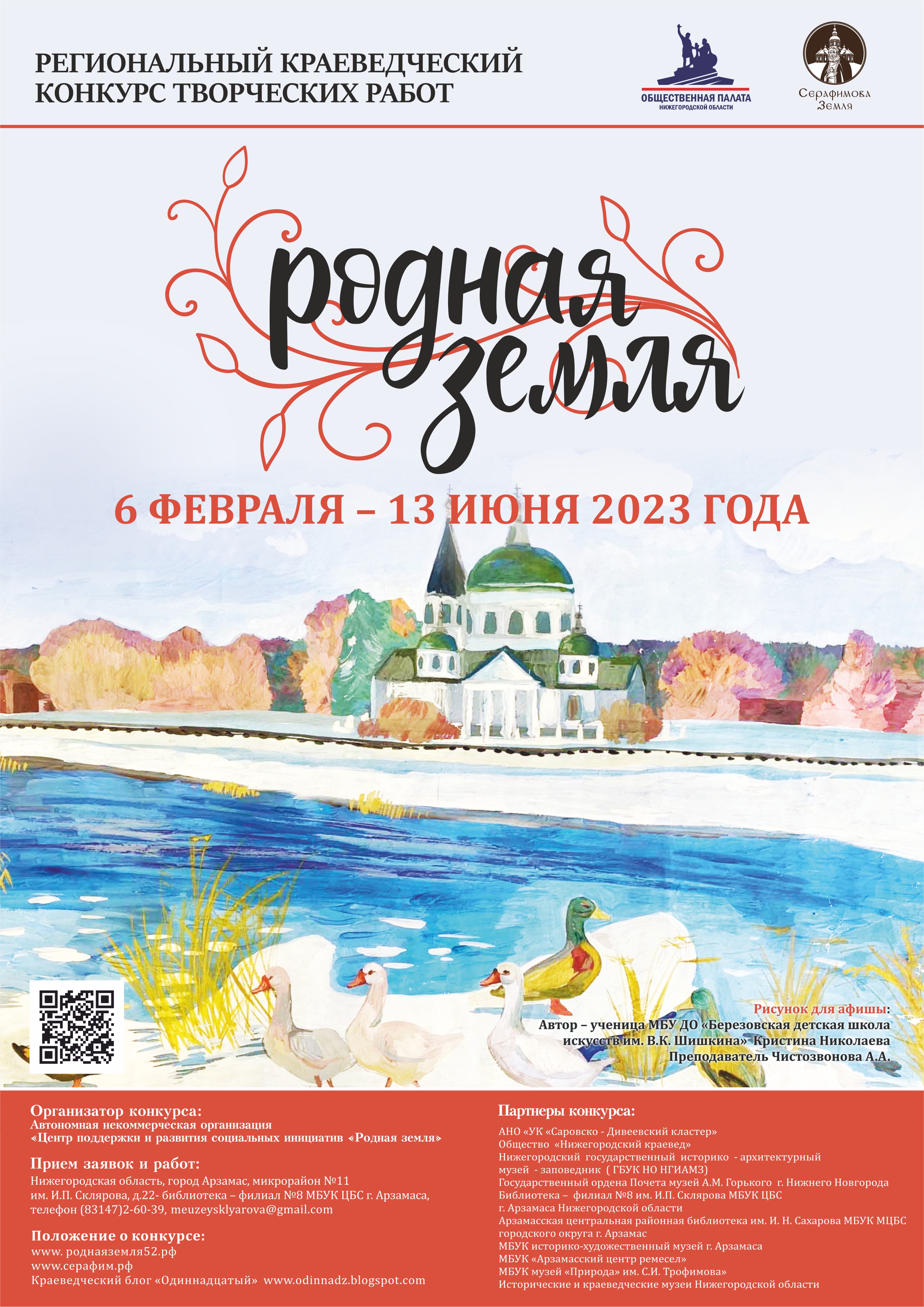 С 6 февраля по 13 июня 2023 года при поддержке Общественной палаты Нижегородской области пройдет IV региональный краеведческий конкурс творческих работ «Родная земля».