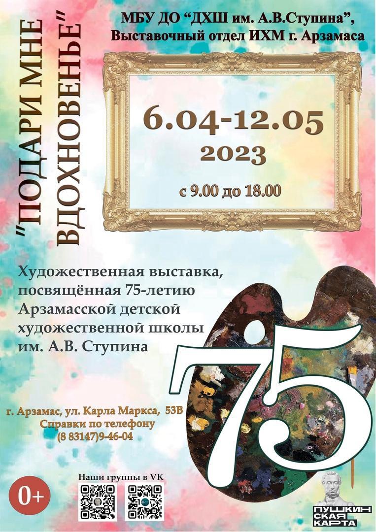 6 апреля в Выставочном отделе Историко-художественного музея открылась художественная выставка «Подари мне вдохновенье», посвященная 75-летию Арзамасской детской художественной школы им. А. В. Ступина.